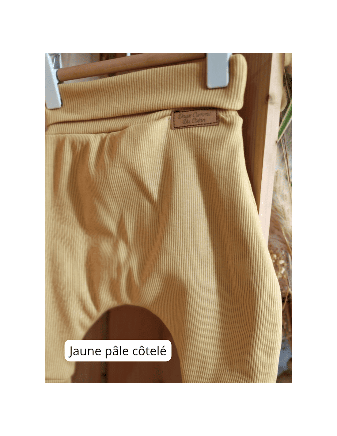 Tout comme la taille 1 et 2, vous pouvez plier ou déplier la ceinture et les chevilles au fur et à mesure que votre enfant grandit. Exit la coupe sarouel pour la taille 3 puisqu'il n'y plus besoin de garder de place pour la couche.