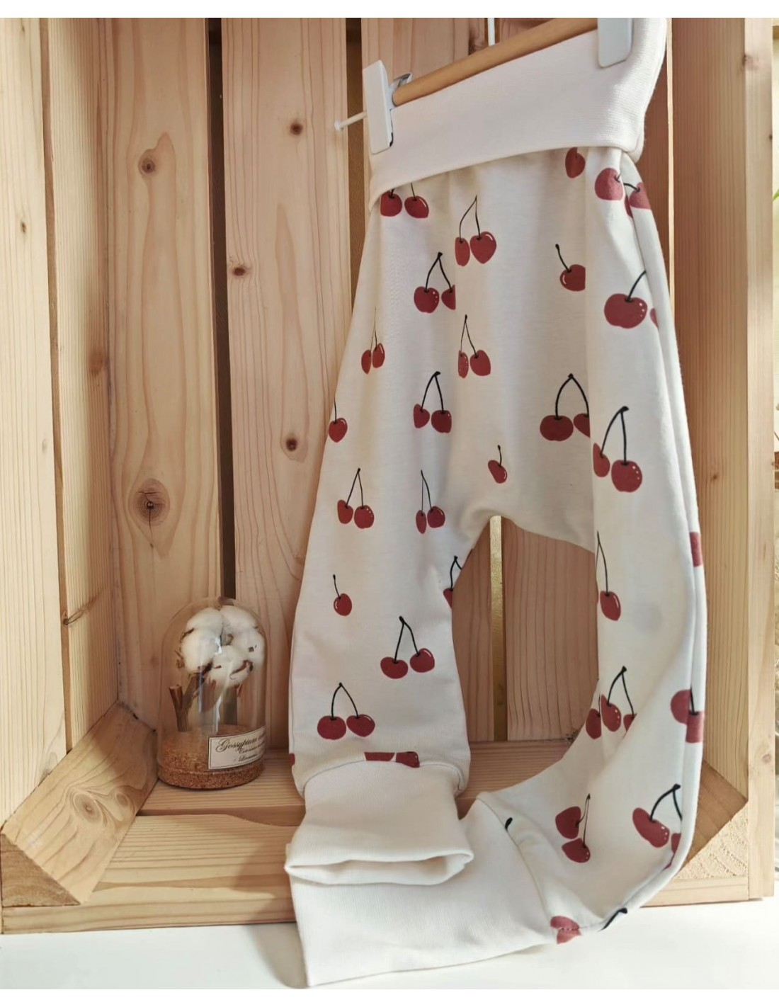 Au début, vous repliez les chevilles et la taille. Bébé portera le pantalon ample. Puis au fil des mois, le pantalon s'ajuste et devient legging, vous dépliez les chevilles et la taille petit à petit (vous pouvez aussi laisser la taille dépliée pour tenir leur petit ventre bien au chaud).