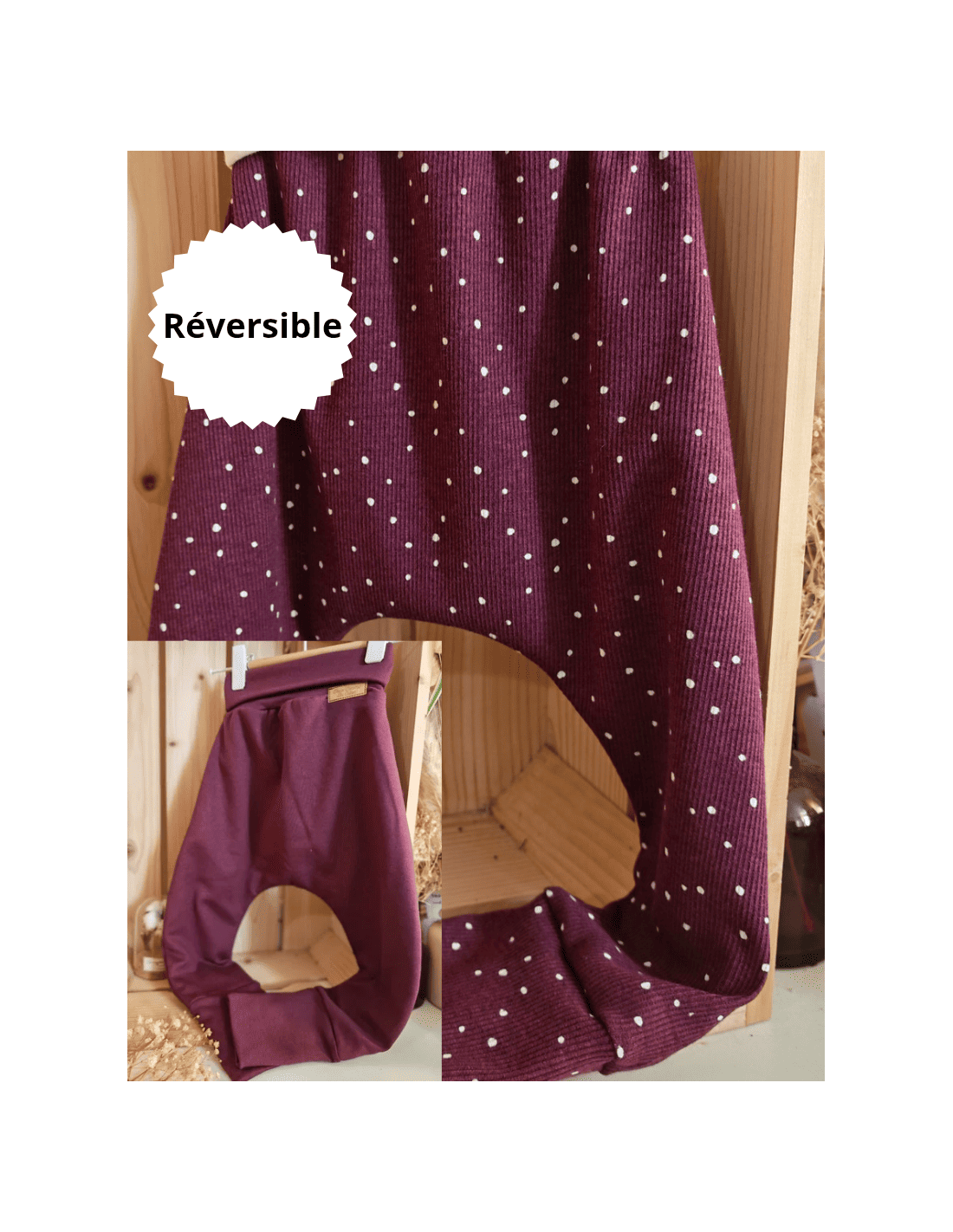 🔥🔥🔥Pantalon réversible & évolutif bio - Pois & prune molletonné