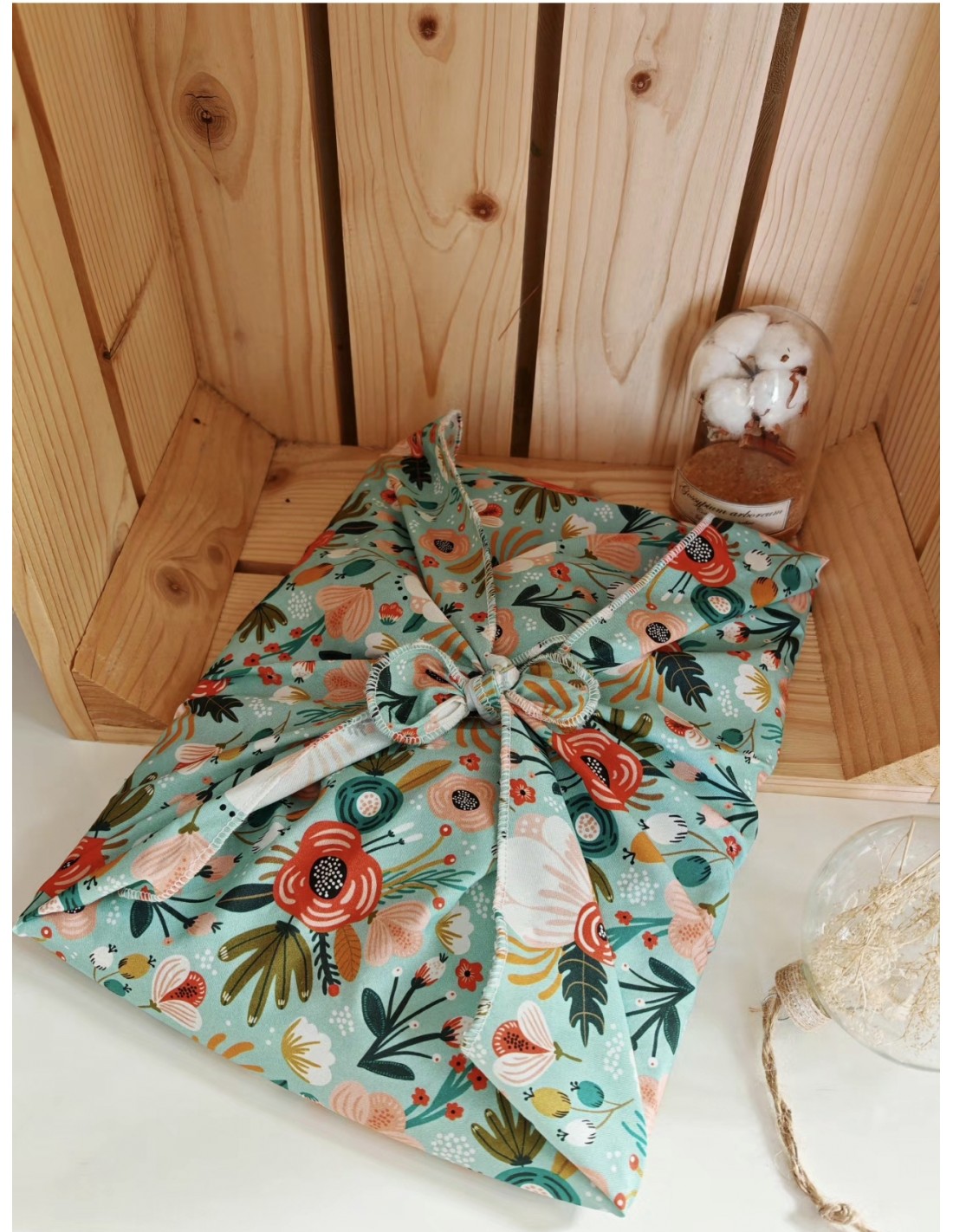 Le furoshiki remplace le papier cadeau jetable. Vous pouvez soit l'offrir avec le cadeau, soit le garder pour emballer un prochain présent. 3 dimensions : voir onglet "en savoir plus"